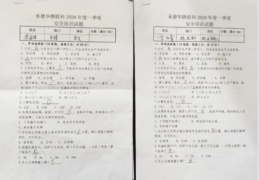 為增強(qiáng)華騰聯(lián)科公司員工安全意識(shí),高效有序推進(jìn)疫情防控復(fù)工復(fù)產(chǎn)工作,公司安全科牽頭制定了《項(xiàng)目管理安全手冊(cè)》、《公司年度安全計(jì)劃》、《企業(yè)安全生產(chǎn)應(yīng)急預(yù)案》、《施工現(xiàn)場(chǎng)安全生產(chǎn)事故應(yīng)急救援預(yù)案》、《防疫安全責(zé)任書(shū)》、《新型冠狀病毒肺炎防疫應(yīng)急處置方案》、《防疫專(zhuān)項(xiàng)承諾書(shū)》和復(fù)工審批流程,并通過(guò)線(xiàn)上、線(xiàn)下培訓(xùn)和考試的方式,提升了員工安全防范意識(shí)和安全管理能力,為集團(tuán)公司“質(zhì)量提升年”活動(dòng)的安全質(zhì)量提升層面提供保障。
