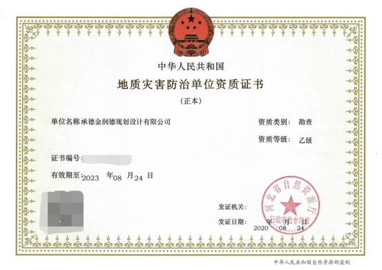 近日,經(jīng)河北省自然資源廳核準(zhǔn),金潤德公司申報(bào)的地質(zhì)災(zāi)害治理工程勘查、地質(zhì)災(zāi)害治理工程設(shè)