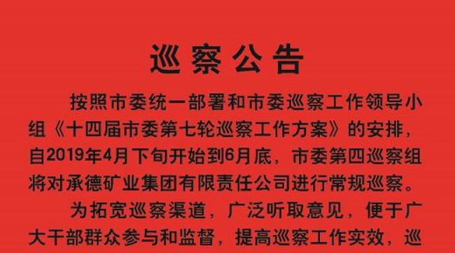 為貫徹落實(shí)全面從嚴(yán)治黨要求,根據(jù)承德市委統(tǒng)一安排部署,5月7日,第四巡查組進(jìn)駐我集團(tuán)開(kāi)展巡察工作。2020-02-15